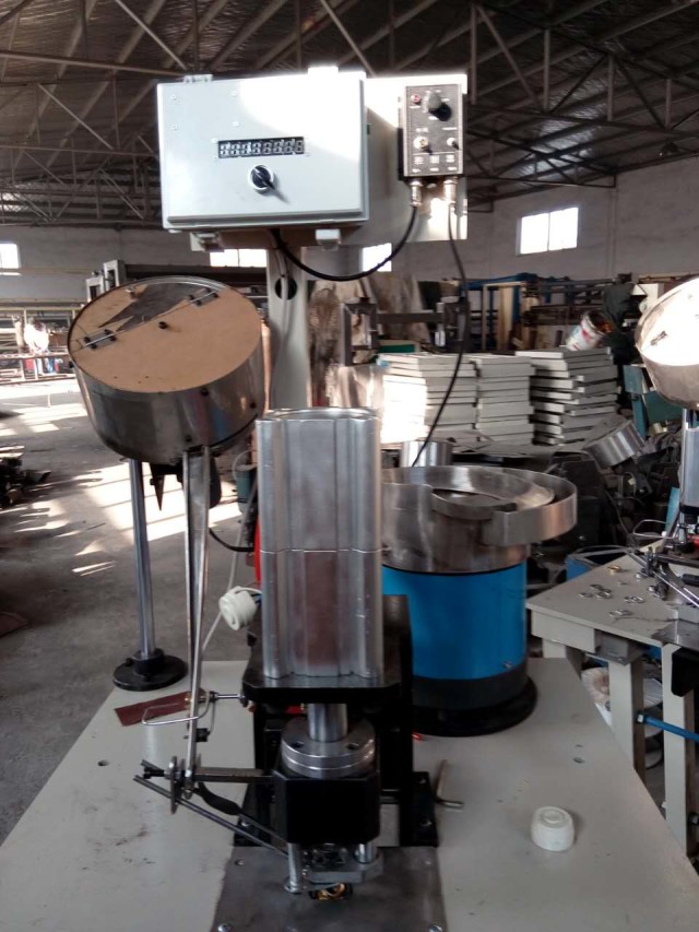 4.根據生產要求把相應的紐扣或雞眼倒入打扣機臺面上的左右槽內,打開電源開關,讓打扣機通電。