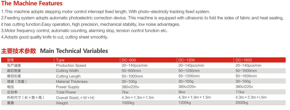 2、放料系統采用自動光電糾偏裝置。本機配有折邊,超聲波燙合,切片功能,集光、電為一-體,操作簡便,截切精度高,機械穩定,噪音低等優點,是無紡布裁切加工的理想設備。